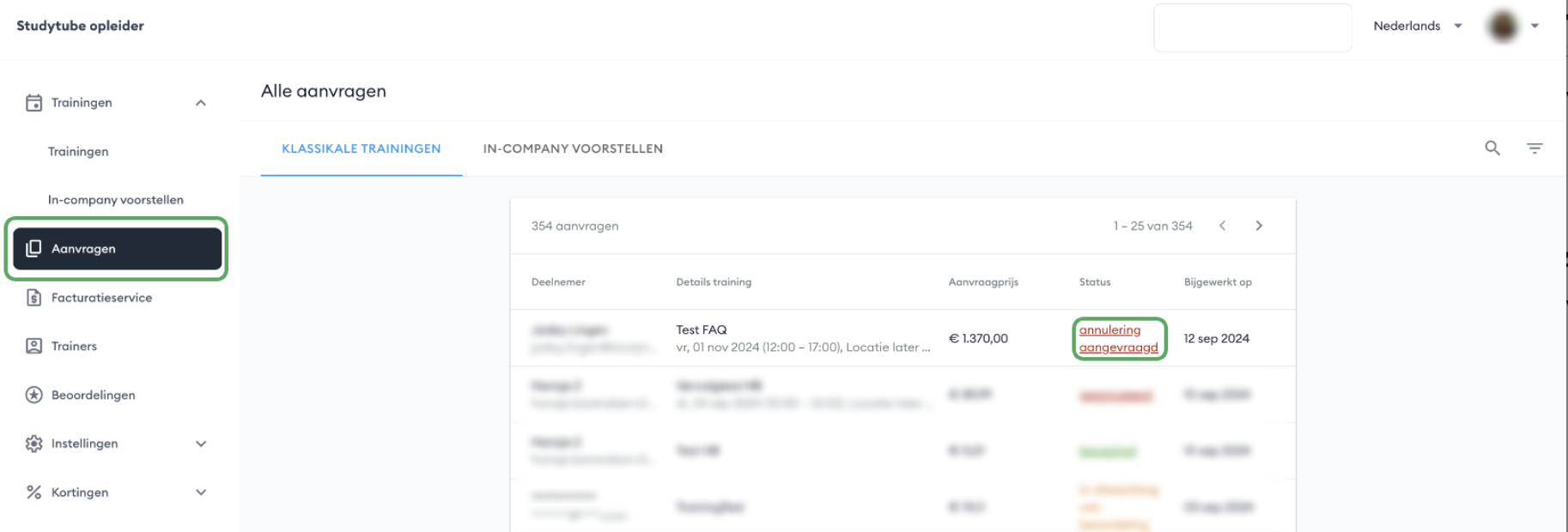 De klant heeft de training geannuleerd, jammer! Zodra de klant de aanvraag annuleert, ontvangen jullie automatisch een e-mail om de annulering te bevestigen.