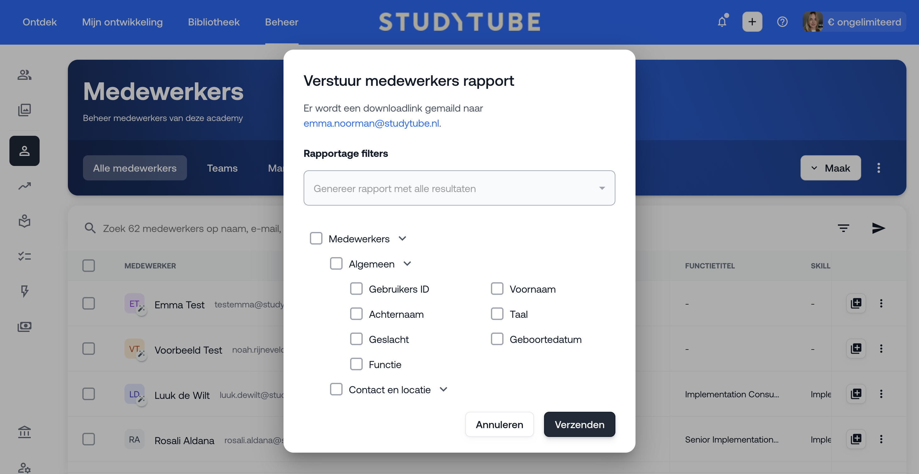 Je ontvangt vervolgens een CSV-bestand met de huidige budgetten per e-mail.