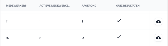 Wanneer er een quiz is gekoppeld aan een online training, biedt de rapportage een extra optie:
