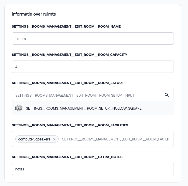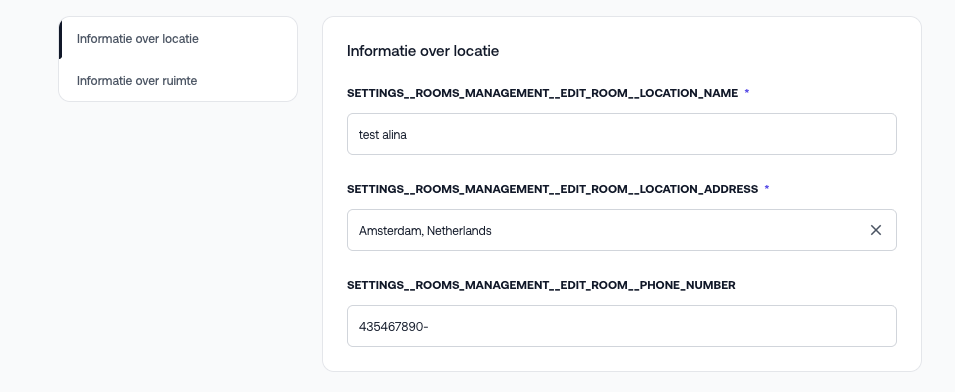 Na het aanmaken van een locatie kun je hier één of meerdere ruimtes aan koppelen. Per ruimte kun je optioneel de volgende gegevens invullen: